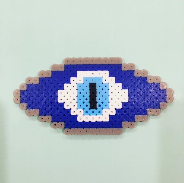 I've been fascinated by the evil eye for many years. Whether intentional or not, I think it's possible to be negatively affected by someone else's energy. I like the idea of using a talisman for protection against the evil eye. Talismans vary greatly among the many cultures that believe in the evil eye. I have a necklance and bracelet with evil eye charms and I've made talismans out of perler beads. So naturally my next step is to make them in R.
