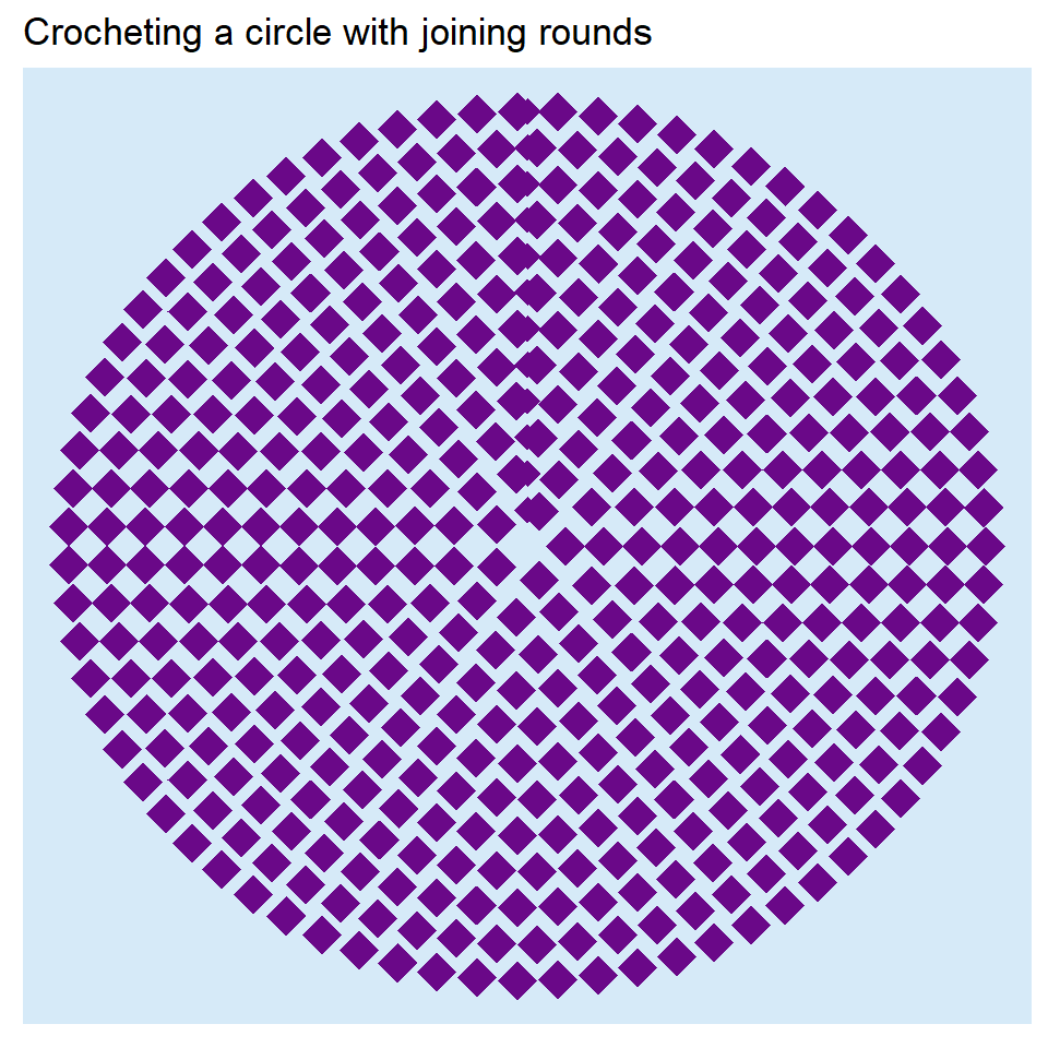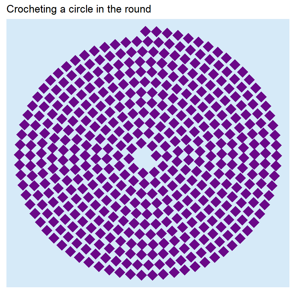 If there's one thing I'm passionate about, it's combining my passions. So right now I'm going to visualize crochet circles using R's ggplot2 package.