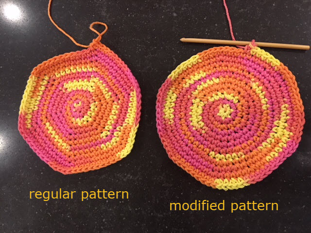 So that's the pattern that produces a hexagon-looking spiral. It emerges as a hexagon because I increase in the same 6 places in each round.