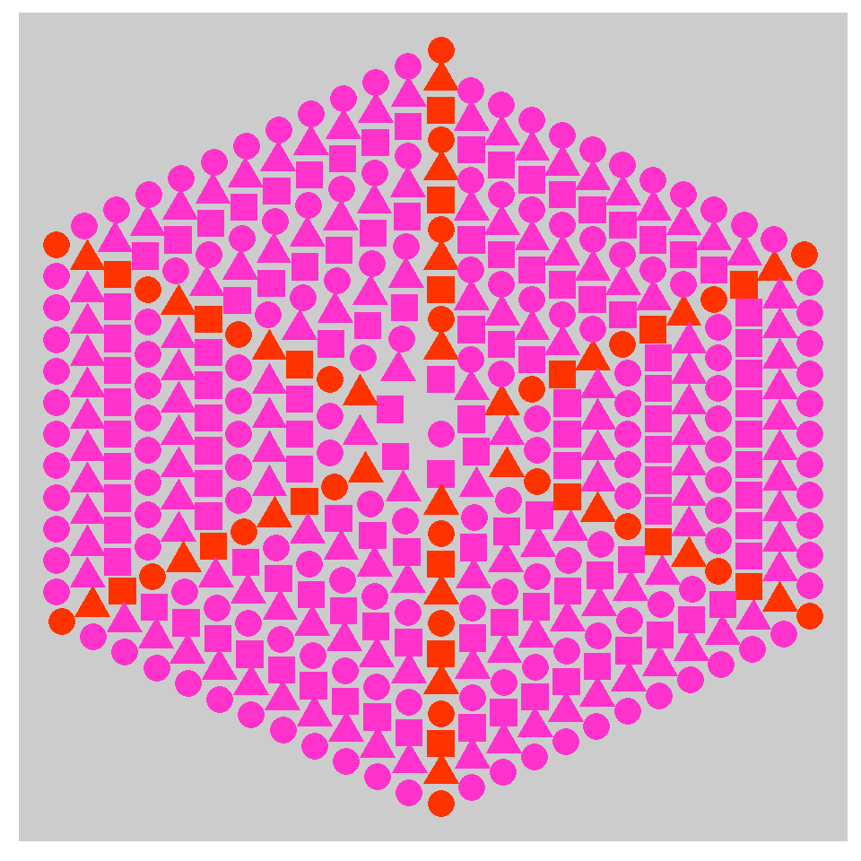 ggplot(newhex00, aes(x = x, y = y, col = inc, shape = rnd)) +