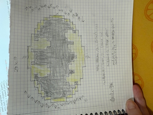 I always like to figure out the mid point and look for patterns and symmetry when I code these out. Sometimes it's easier to assign the colors by x values and other times by y values. This logo has some symmetry so I utilized the absolute value function to assign x = 1 and x = -1, for example, at the same time whenever I could.